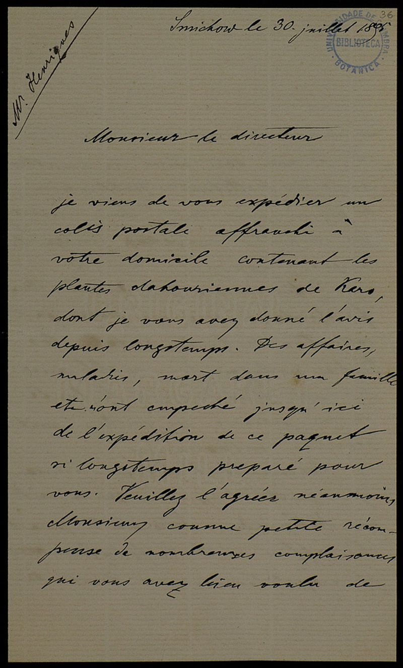 Henriques, Júlio Augusto, 1838-1928 (destinatário)