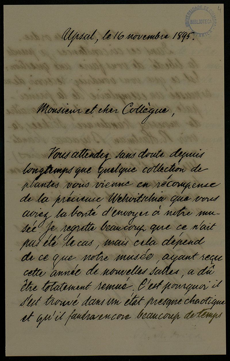 [Lettre], 1895 nov. 16, Upsal, [à] Monsieur [Júlio Henriques, Coimbra]
