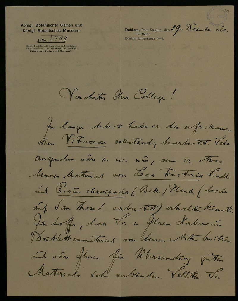 Papel timbrado de: Konigl. Botanischer Garten und Konigl. Botanisches Museum.