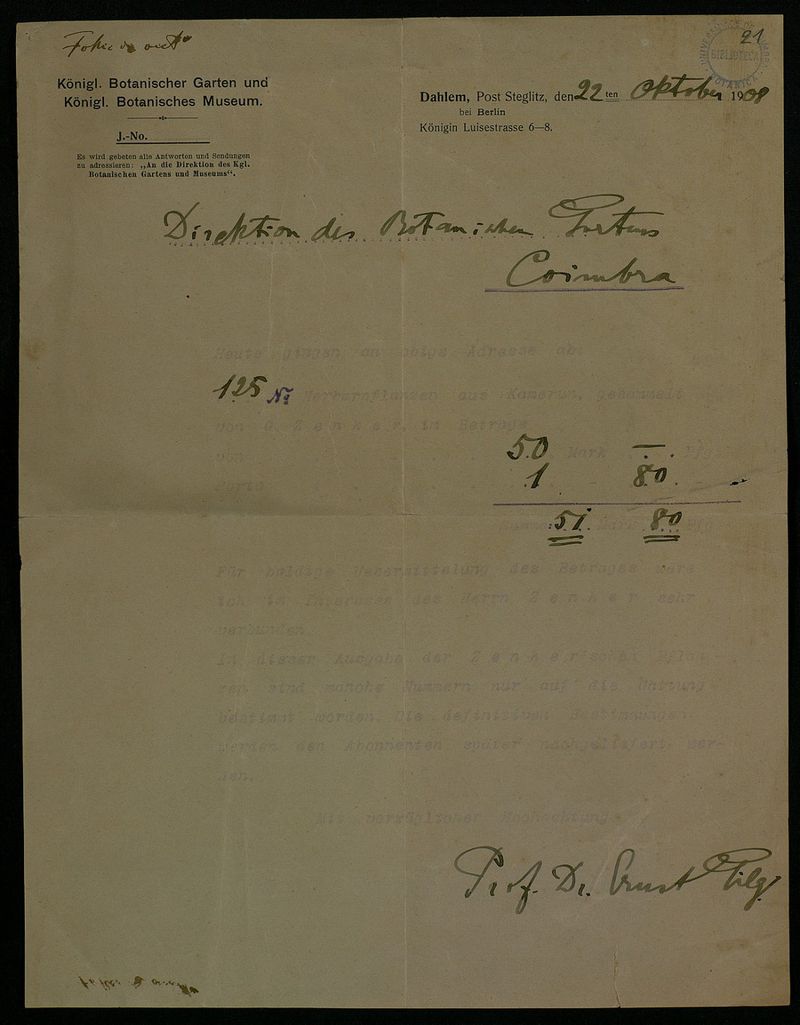 Papel timbrado de: Konigl Botanischer Garten und Konigl. Botanisches Museum.