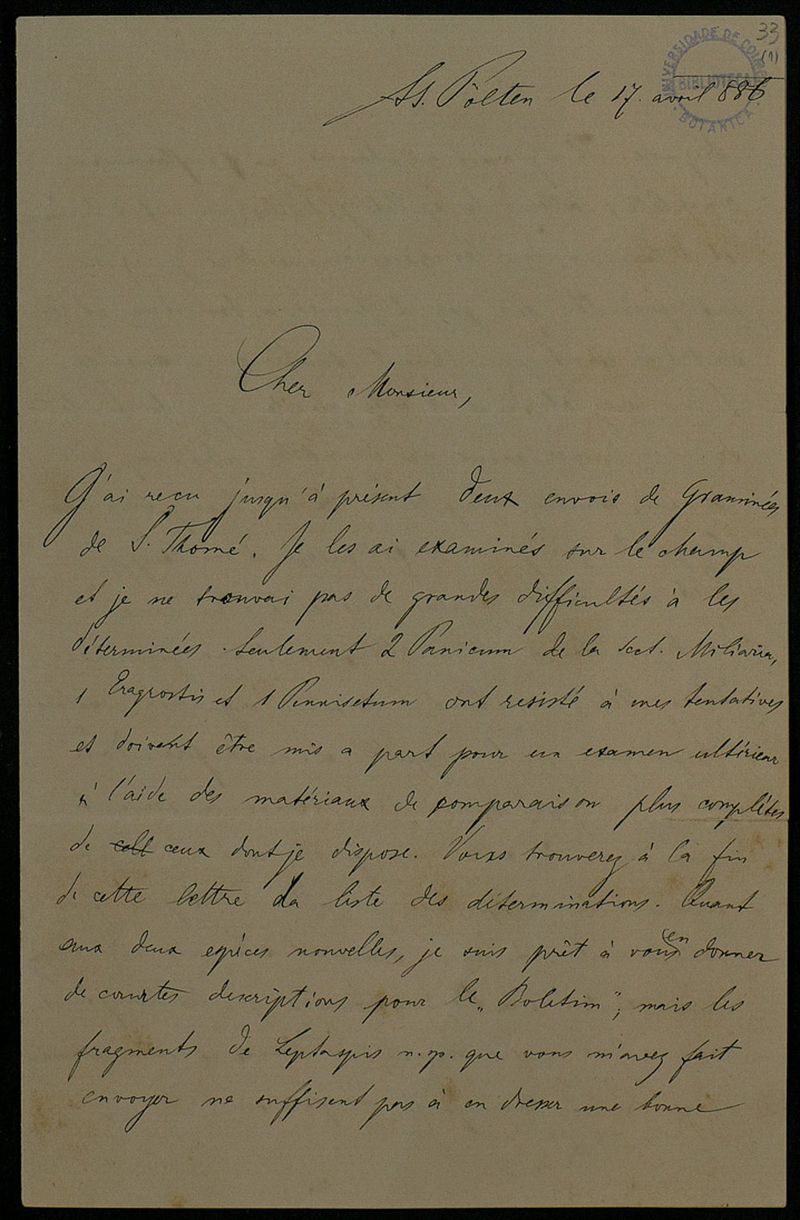 [Lettre], 1886 avr. 17, St. Poelten, [à] Monsieur [Júlio Henriques], Coimbra