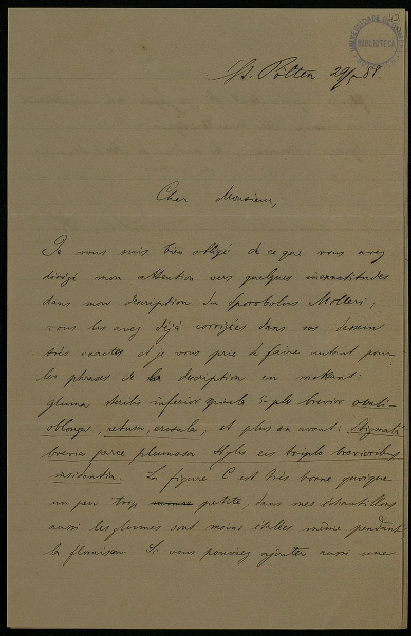 [Lettre], 1888 mai 29, St. Poelten, [à] Monsieur [Júlio Henriques], Coimbra