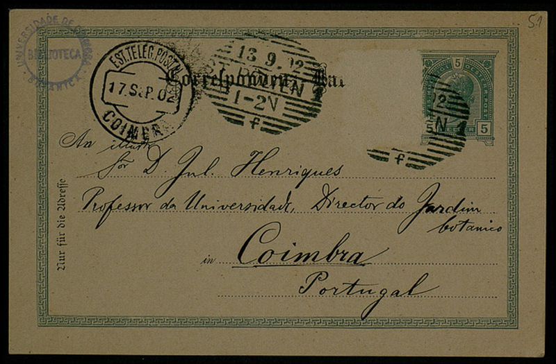 Correspondenz-Karte, 1902 sept. 13, St. Poelten, [à] D. Jul. Henriques, Coimbra