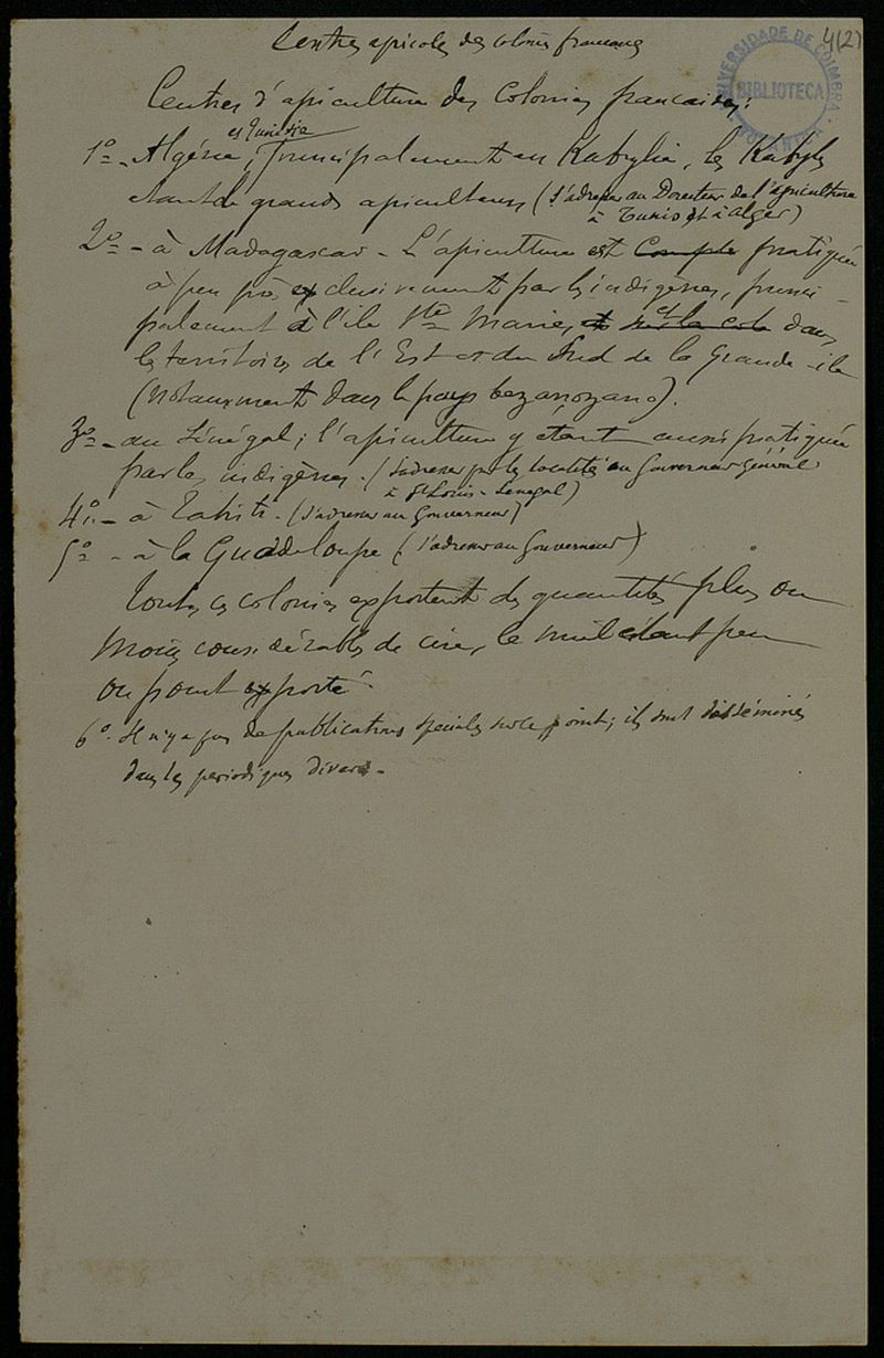 Papel timbrado de: Direction de l'Institut Colonial et du Jardin Botanique de Marseille.