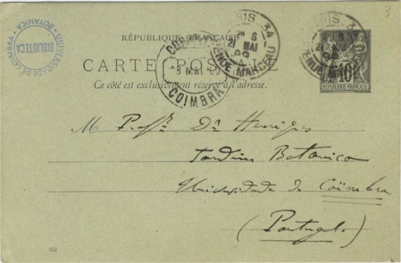 [Carte postale], 1900 mai 21, Paris, [à Júlio] Henriques, Coimbra