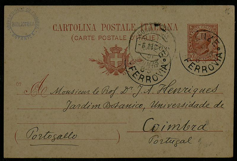 Cartolina Postale Italiana, 1908 mars 4, Firenze, à Monsieur le Prof. Dr. J. A. Henriques, Coimbra