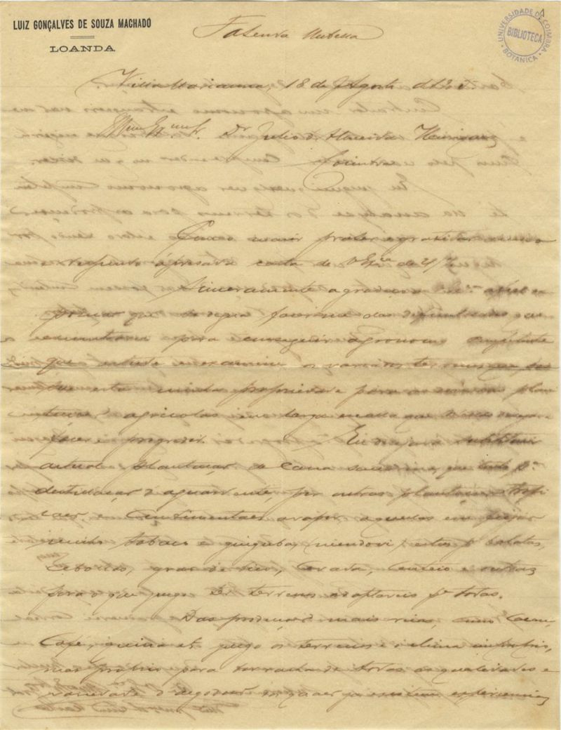 [Carta], 1925 Ago. 18, Villa Marianna, Loanda, [a] Julio d'Almeida[sic] Henriques, Coimbra