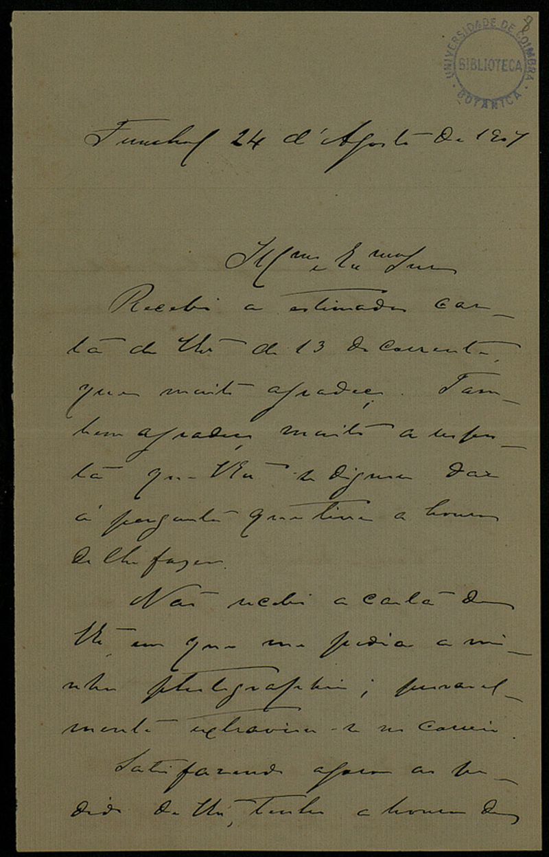 [Carta], 1907 Ago. 24, Funchal, [a Júlio Henriques, Coimbra]