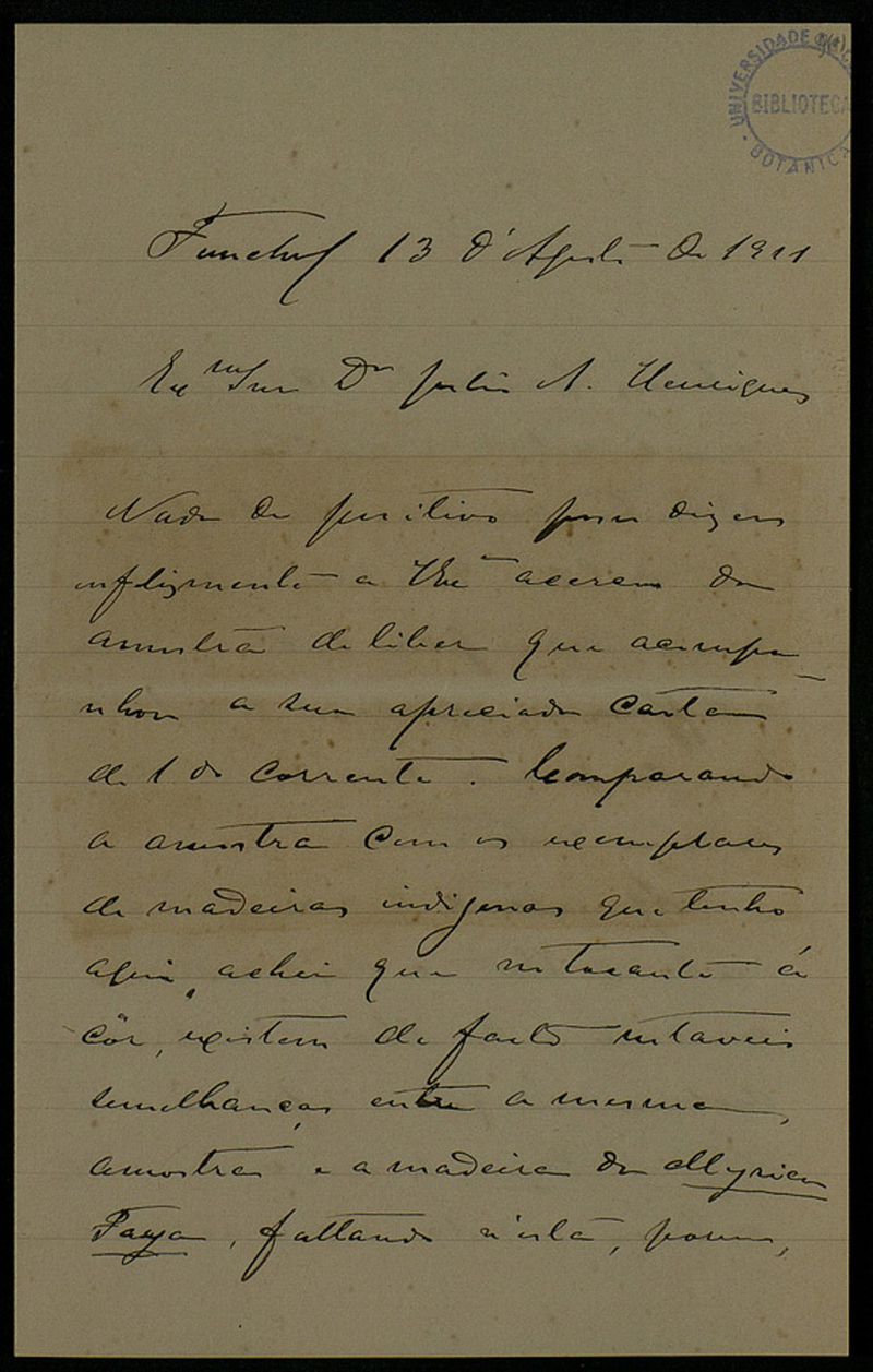 [Carta], 1911 Ago. 13, Funchal, a Júlio A. Henriques, [Coimbra]