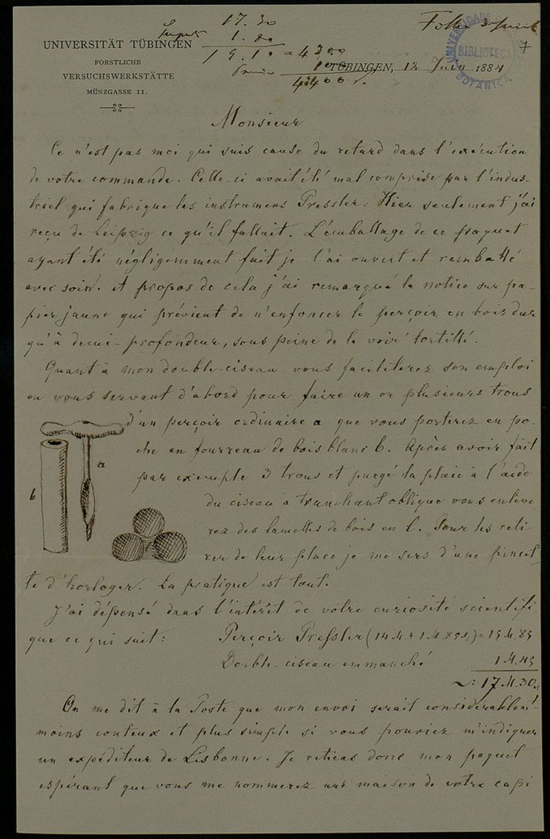 [Lettre], 1884 juin 12, Tubingen, [à] Monsieur [Júlio Henriques], Coimbra