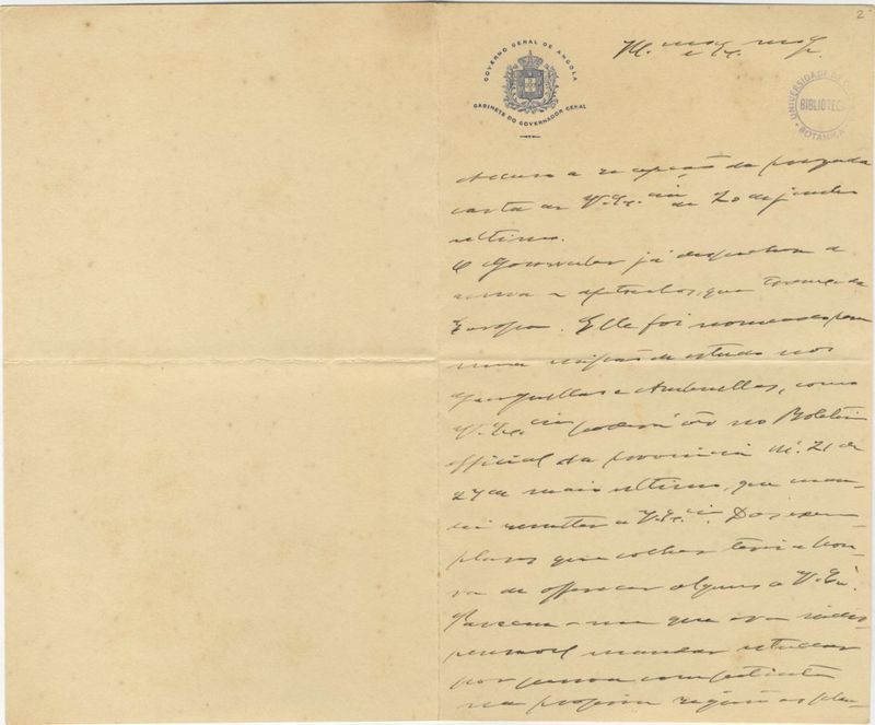 Em papel timbrado de "Governo Geral de Angola - Gabinete do Governador Geral".
