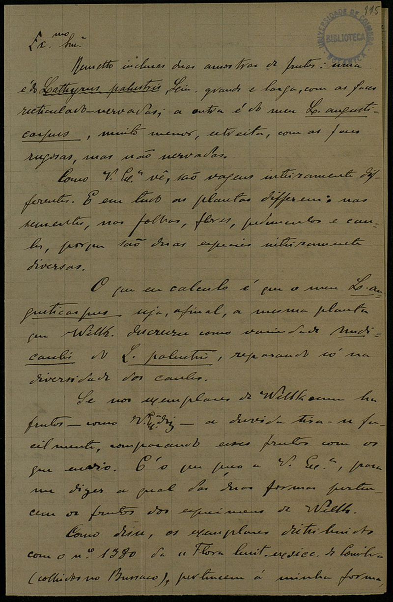 Anexa duas amostras botânicas: uma vagem de Lathyrus angusticarpus, Samp. e uma vagem de Lathyrus palustris, L.
