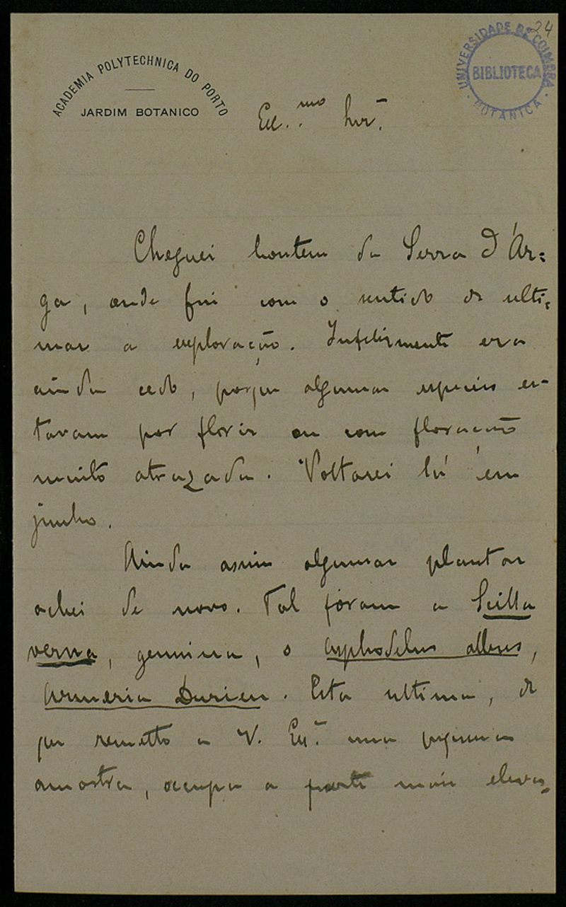 Papel timbrado de: Academia Polythechnica do Porto - Jardim Botanico.