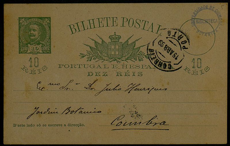 Bilhete Postal, 1899 Abr. 8, Porto, a Dr. Júlio Henriques, Coimbra