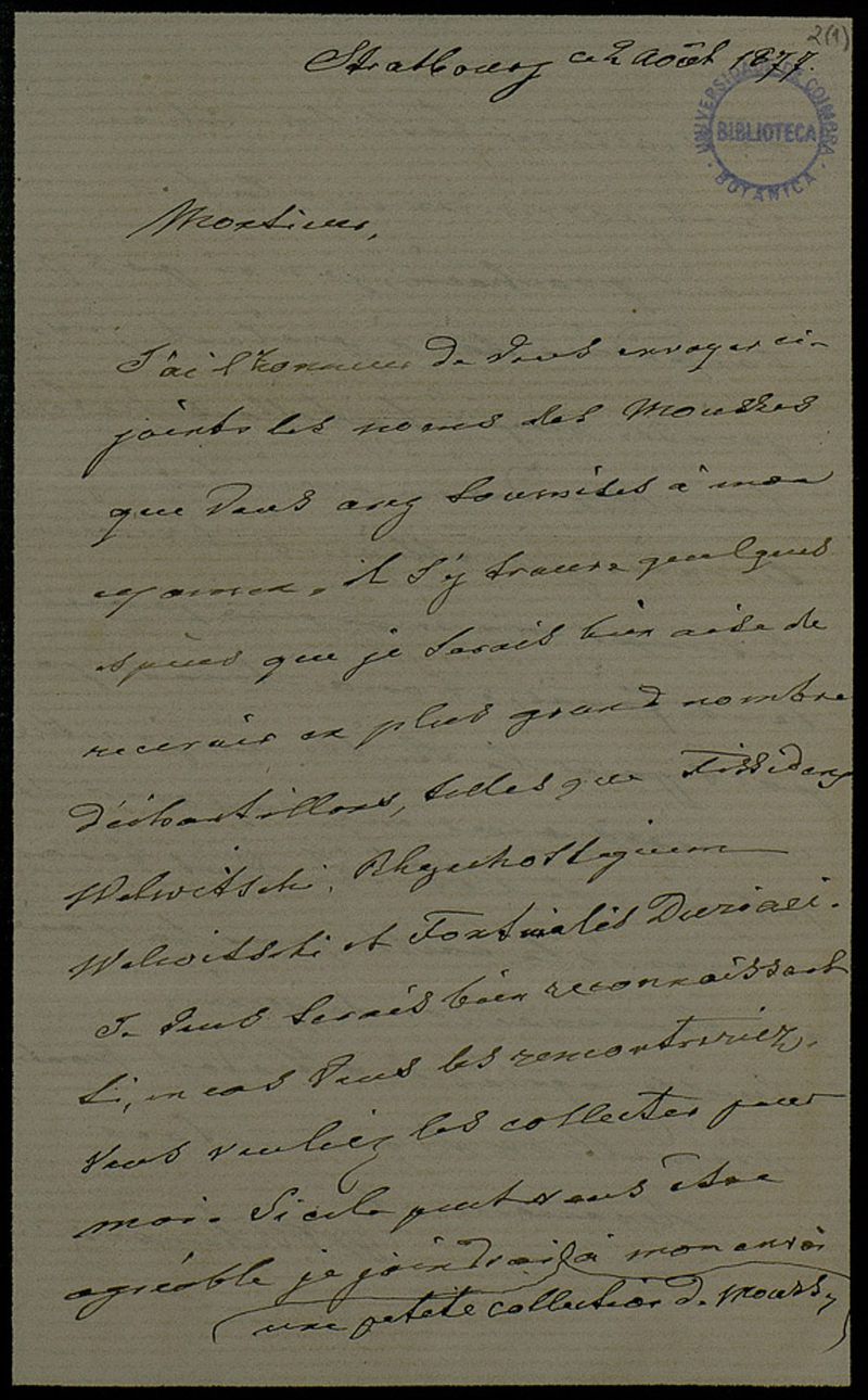 [Lettre], 1877 août 2, Strasbourgue, [à Júlio Henriques, Coimbra]