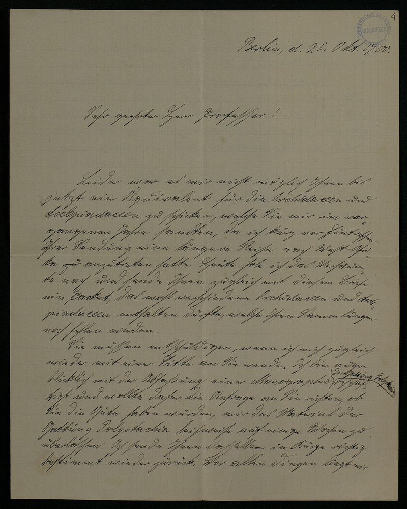 [Brief], 1900 Okt. 25, Berlin, [an] Herr[n] Professor [Júlio Henriques, Coimbra]
