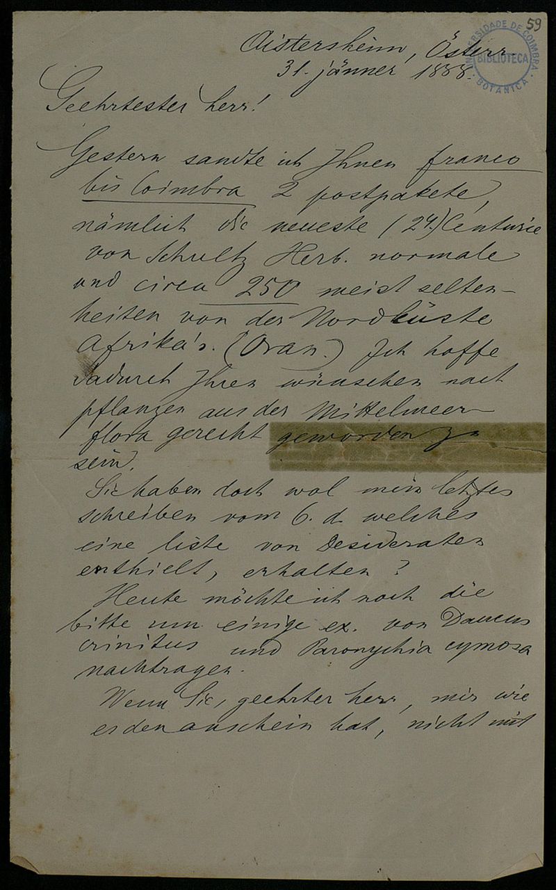 [Brief], 1886 Jan. 31, Aistersheim, [an] Herr[n Adolfo F. Möller, Coimbra]