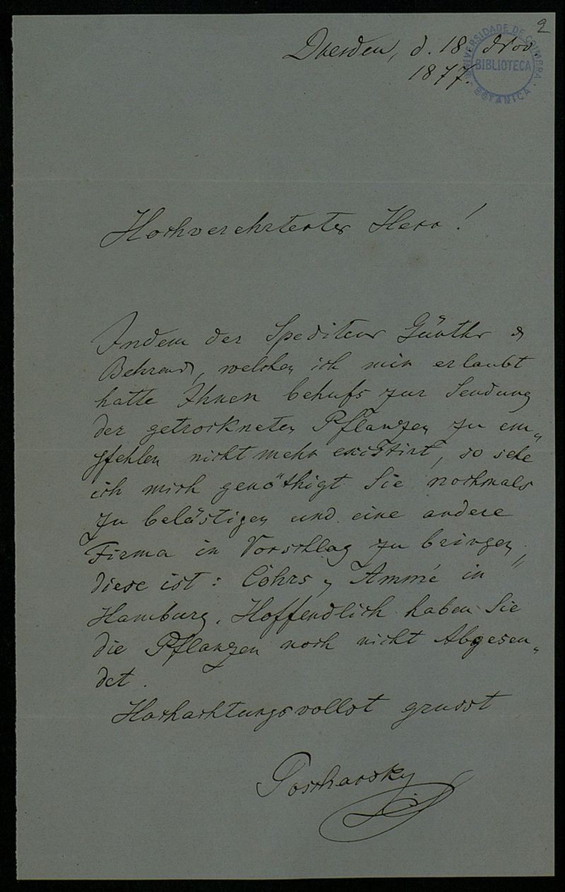 [Brief], 1877 Nov. 18, Dresden, [an] Herr[n Adolfo F. Möller, Coimbra]