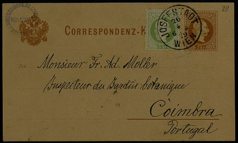 Correspondenz-K[arte], 1879 Apr. 25, Wien, an Fr. Ad. Moller, Coimbra