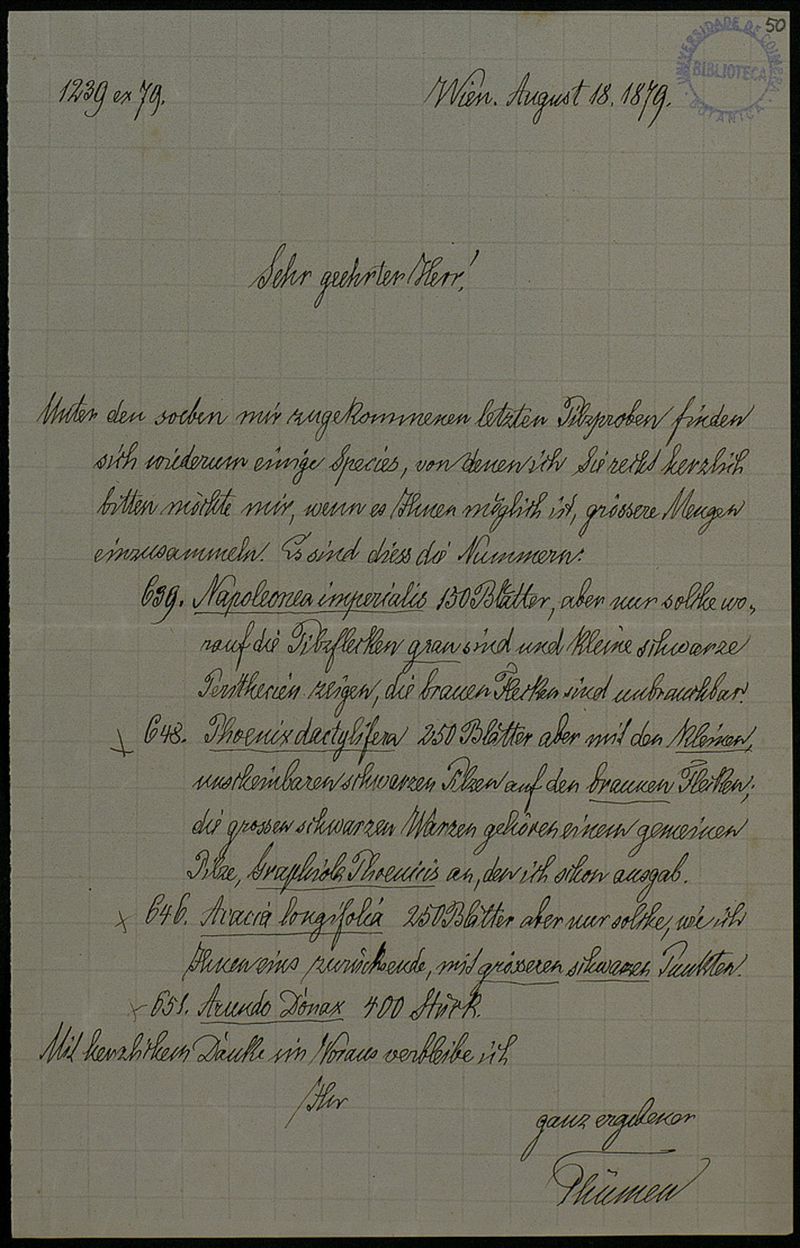 [Brief], 1879 Aug. 18, Wien, [an] Herr[n Adolfo F. Möller, Coimbra]