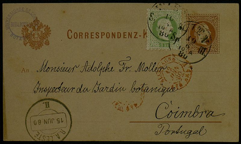 Correspondenz-K[arte], 1880 Juni 10, Wien, an Monsieur Adolphe Fr. Moller, Coimbra