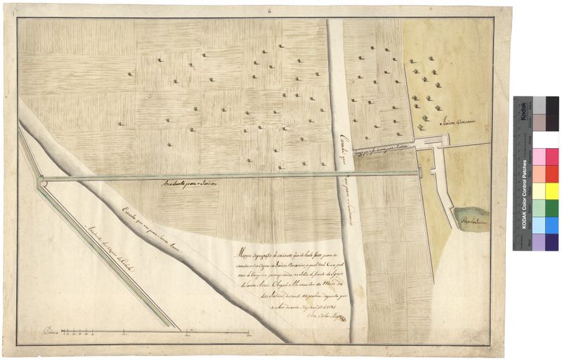 Mappa topografi[c]o do arcoducto que se hade fazer para se introduzir a agoa no Jardim Botanico...