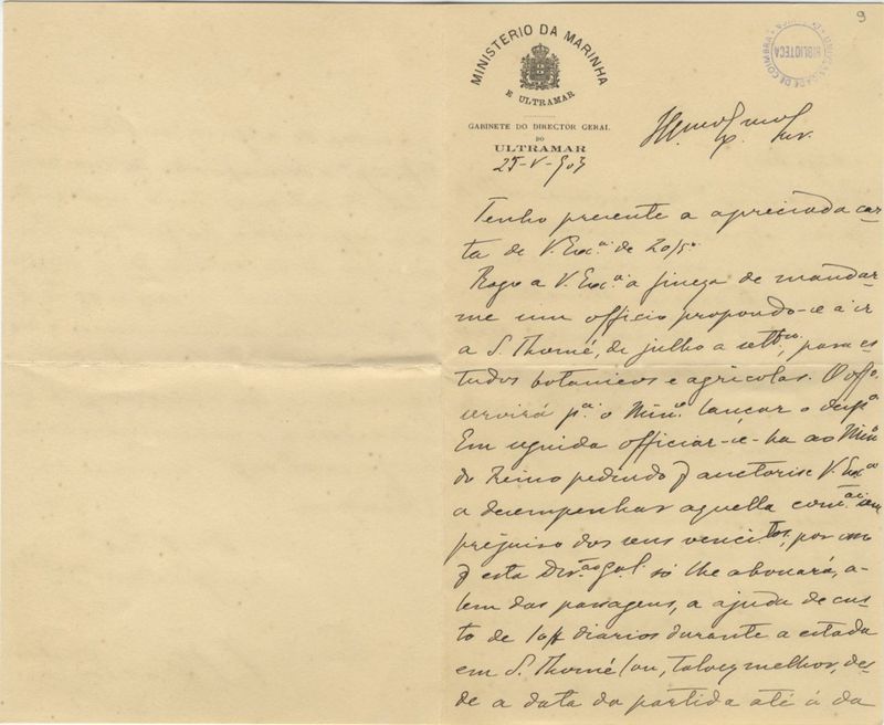 Em papel timbrado de "Ministerio da Marinha e Ultramar - Gabinete do Director Geral do Ultramar".