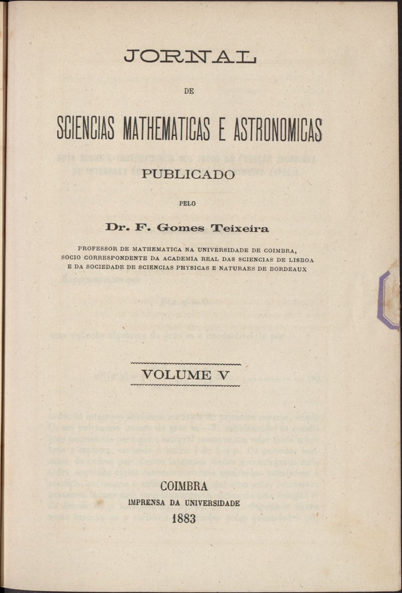 Jornal de sciencias mathematicas e astronomicas - Volume 5