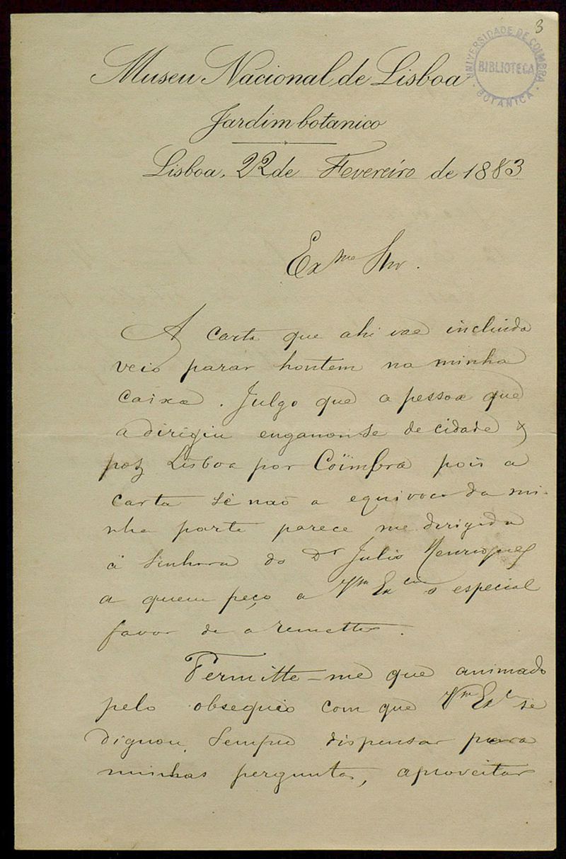 Papel timbrado de: Museu Nacional de Lisboa Jardim Botânico.