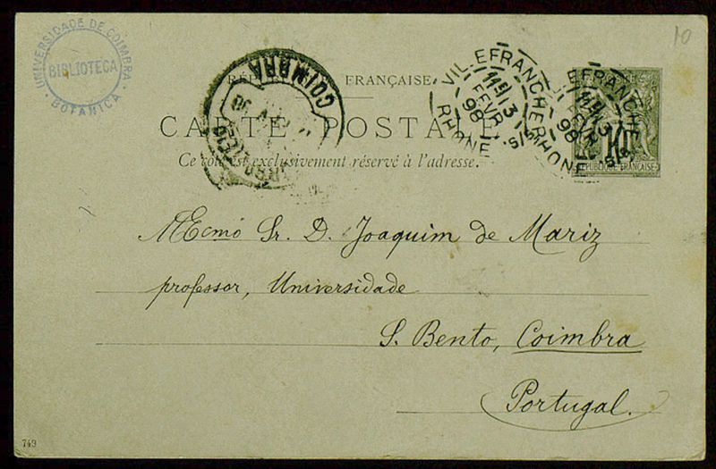 Carte Postale, 1898 fév. 12, Arnas, [à] Joaquim de Mariz, Coimbra