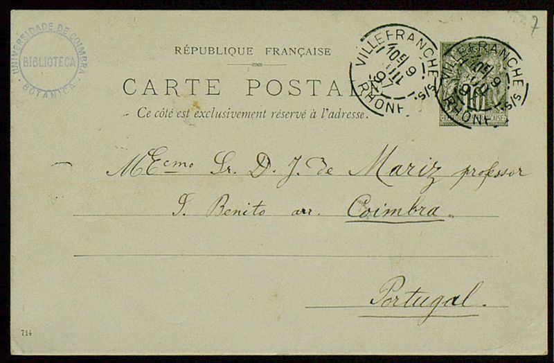 Carte Postale, 1897 juil. 9, Arnas, [à] Dr. J. de Mariz, Coimbra