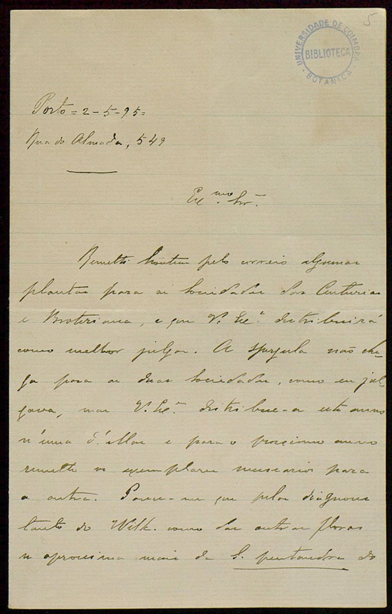 [Carta], 1895 Maio 2, Porto, [a Joaquim Mariz, Coimbra]
