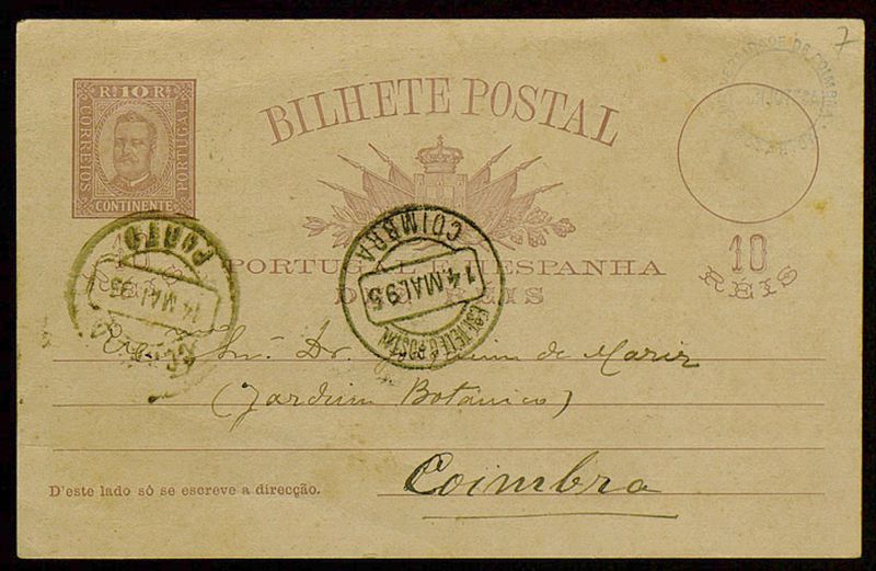 Bilhete Postal, 1895 Maio 14, Porto [a] Dr. Joaquim de Mariz, Coimbra