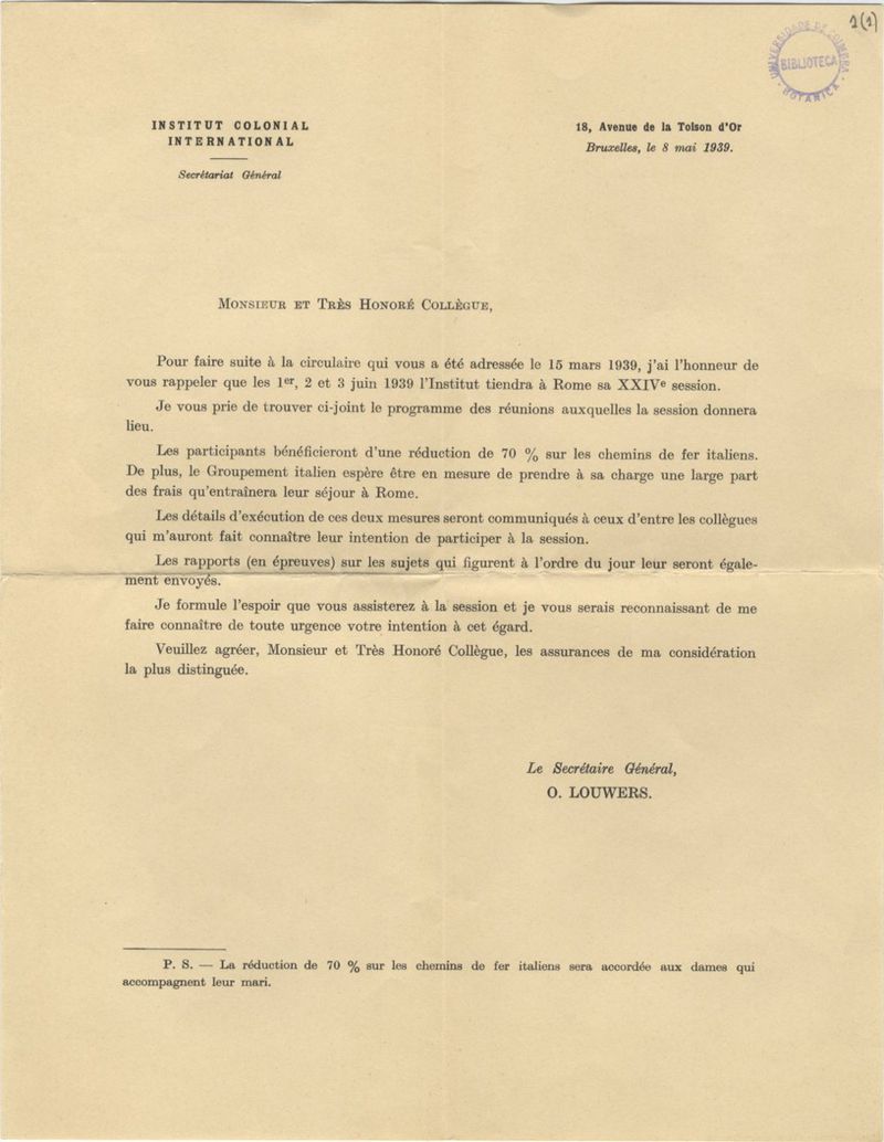 [Lettre], 1939 mai 08, Bruxelles, [à Luís Carrisso, Coimbra]