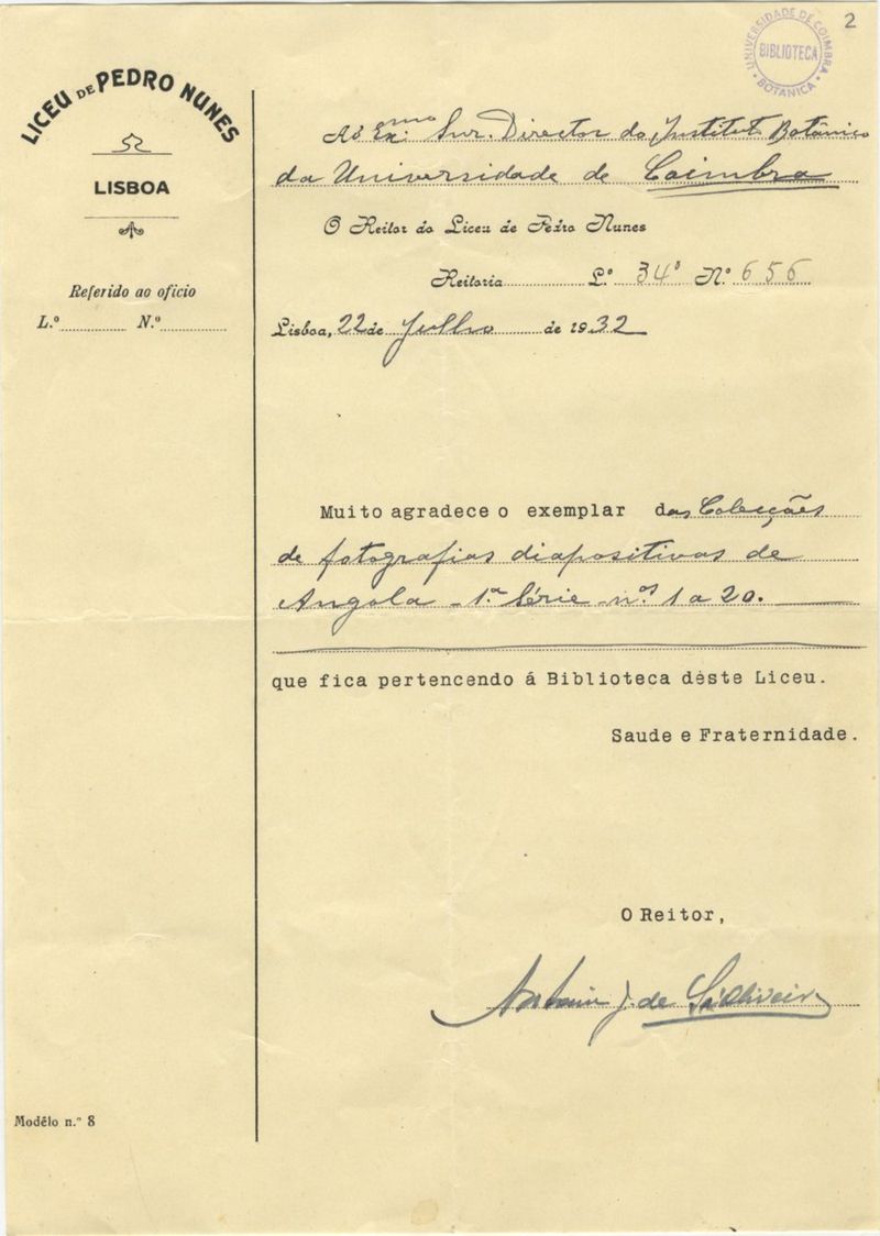 Em papel timbrado de "Liceu de Pedro Nunes - Lisboa".