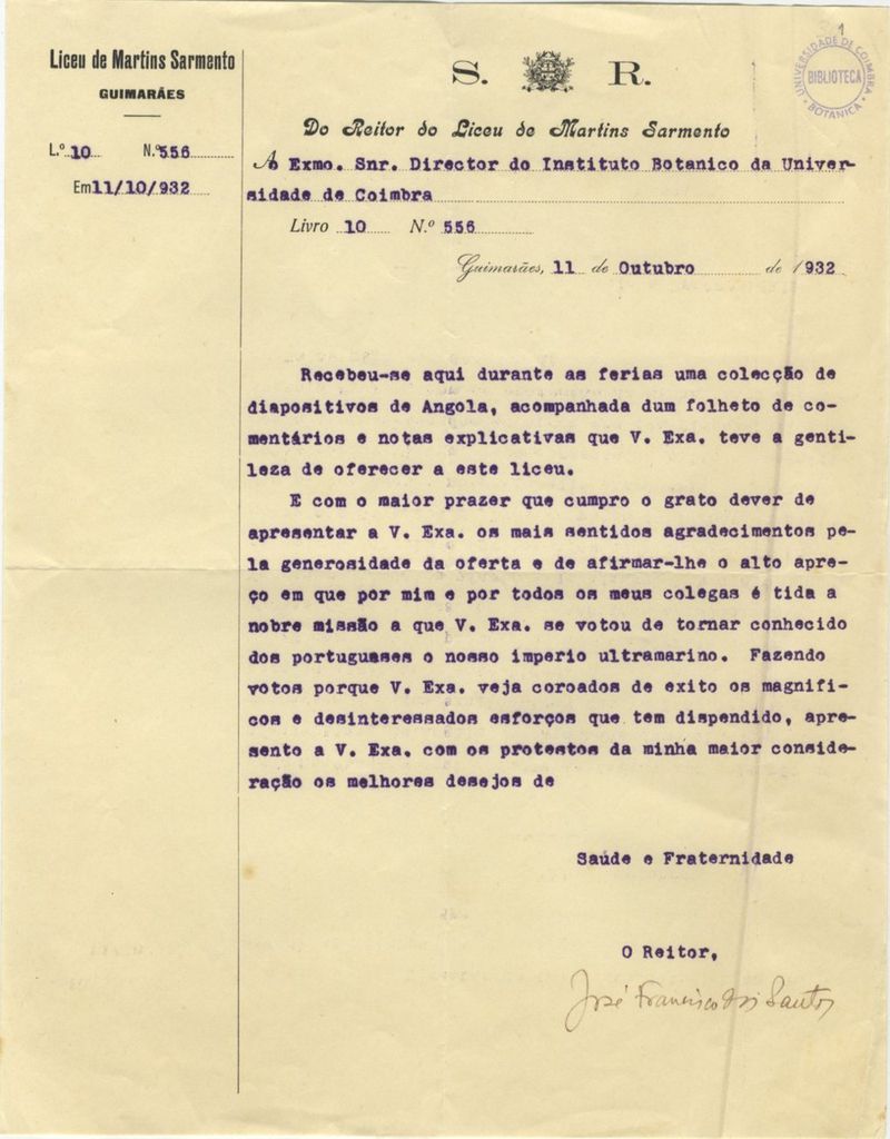 Em papel timbrado de "Liceu de Martins Sarmento".