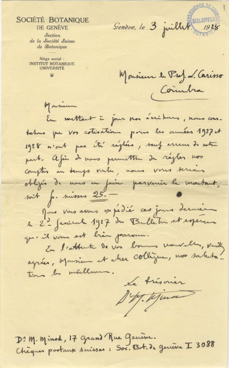 Em papel timbrado de "Société Botanique de Genève".