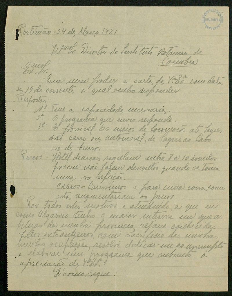 [Carta], 1921 Mar. 24, Portimão, [a Luís Carrisso], Coimbra