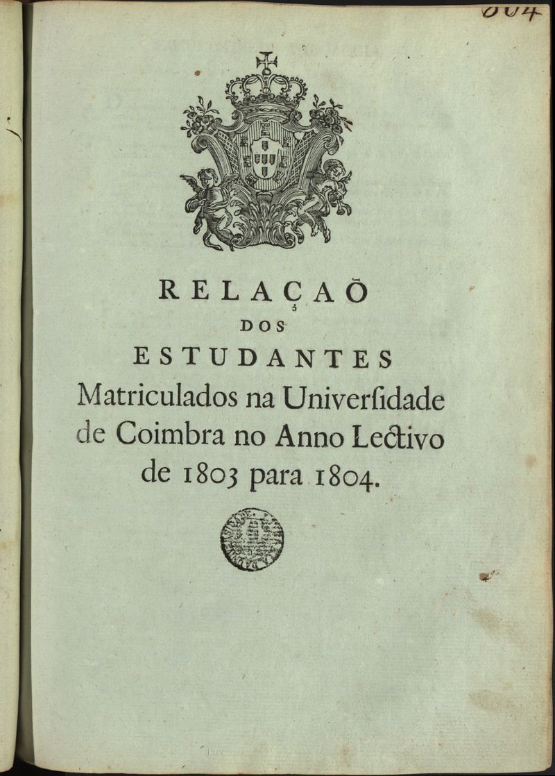 Relação e índice alfabético dos estudantes matriculados na Universidade de Coimbra e no Liceu
