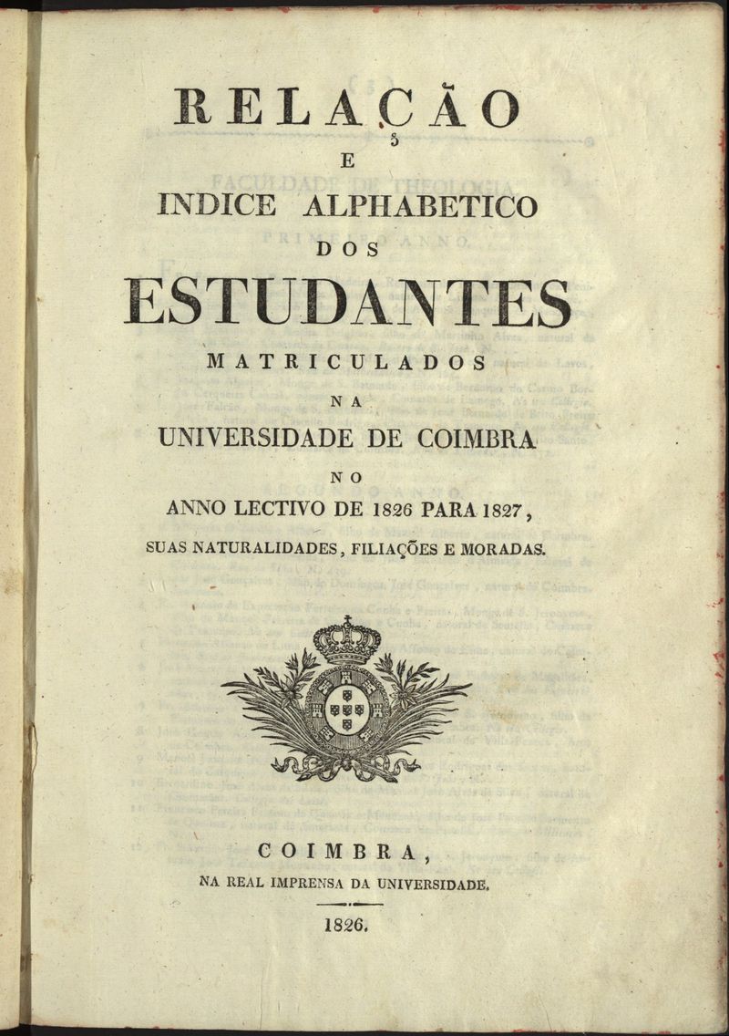 Relação e índice alfabético dos estudantes matriculados na Universidade de Coimbra e no Liceu