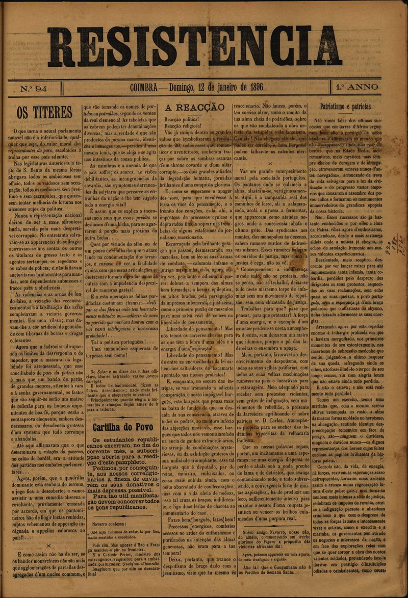Resistência : orgão do Partido Republicano de Coimbra
