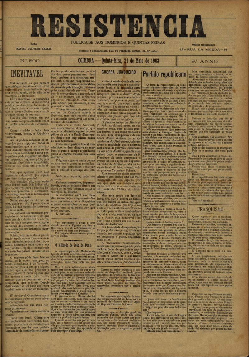 Resistência : orgão do Partido Republicano de Coimbra
