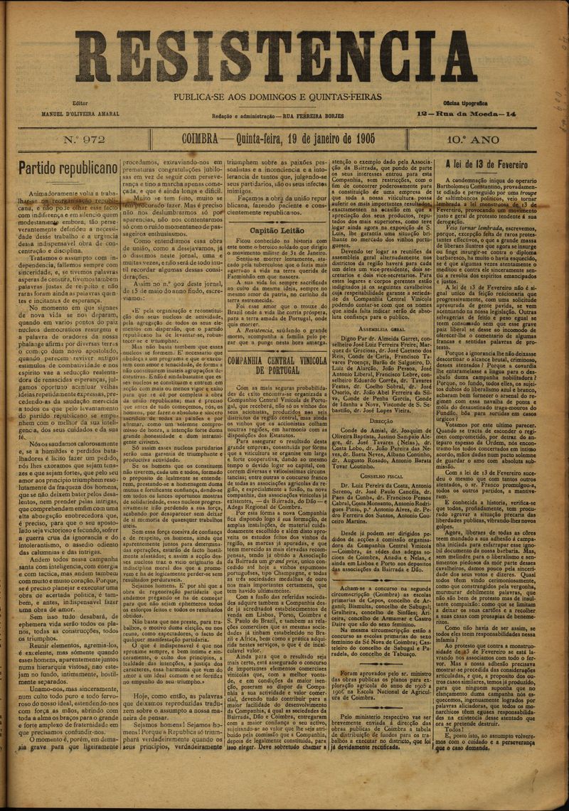 Resistência : orgão do Partido Republicano de Coimbra