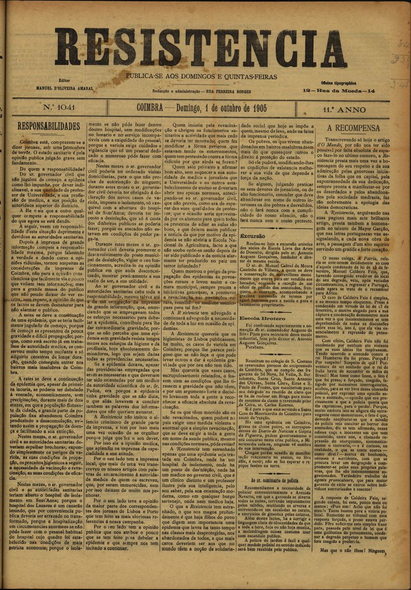 Resistência : orgão do Partido Republicano de Coimbra
