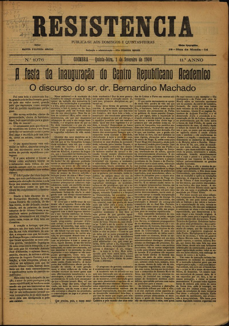 Resistência : orgão do Partido Republicano de Coimbra