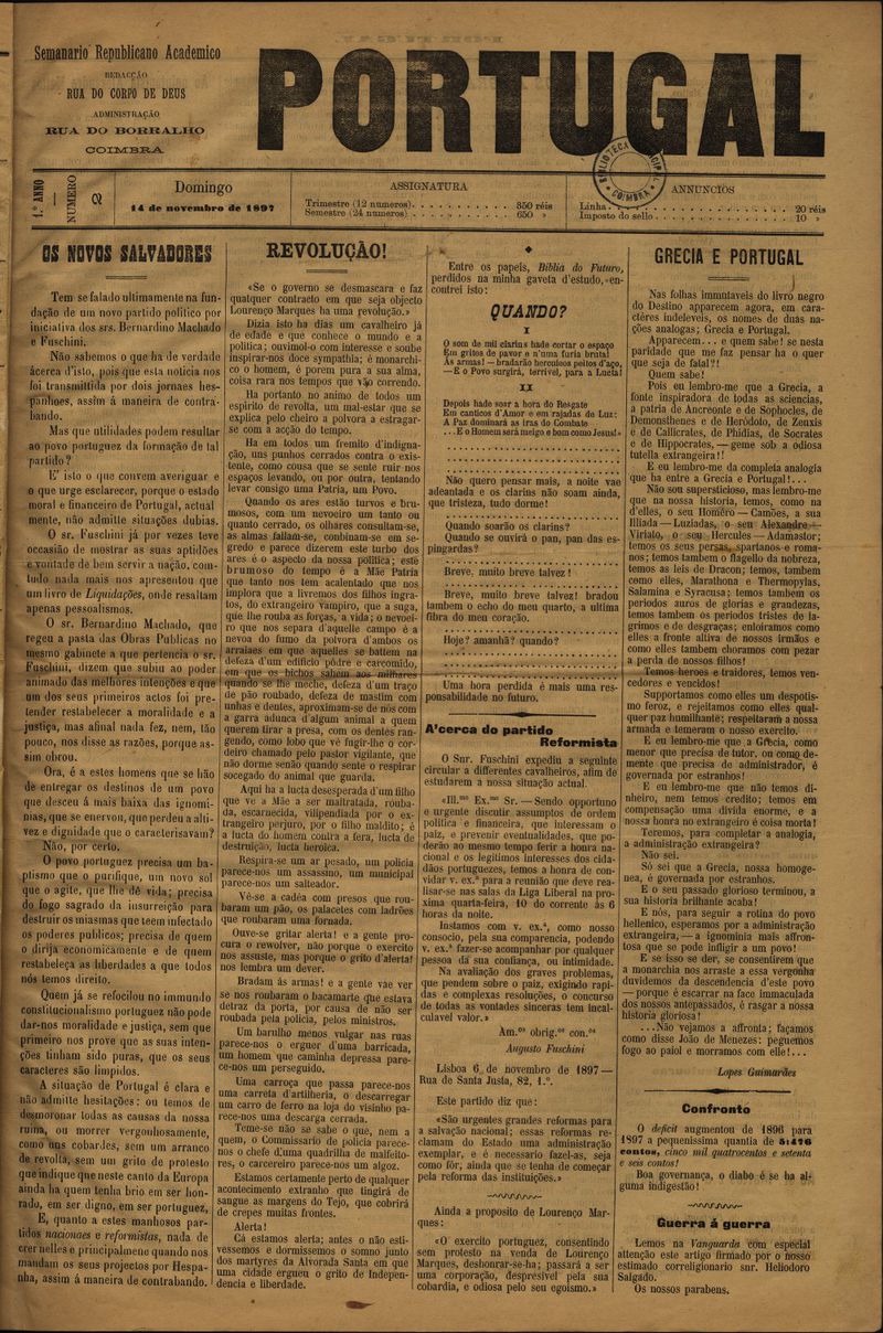 Coimbra : [s.n.], 1897 (Coimbra : Typ. Operária)
