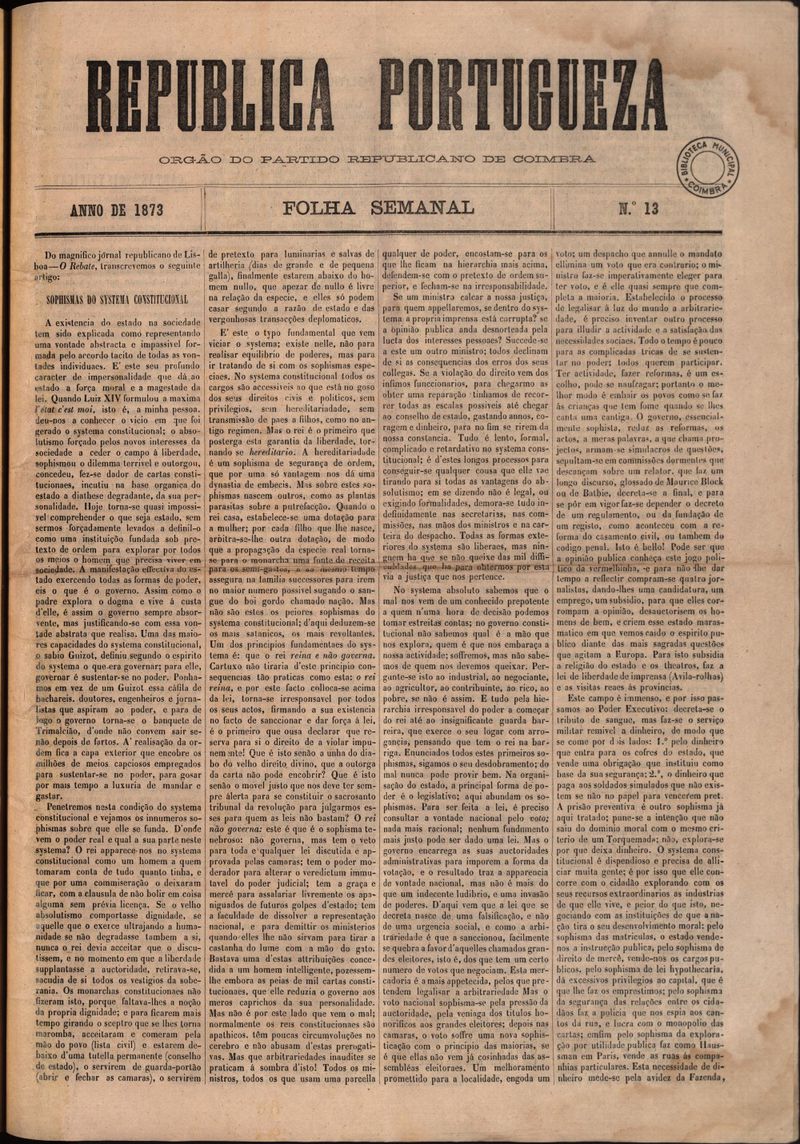 Republica Portugueza : folha semanal - 1873, Julho 15, terça-feira - Nº13