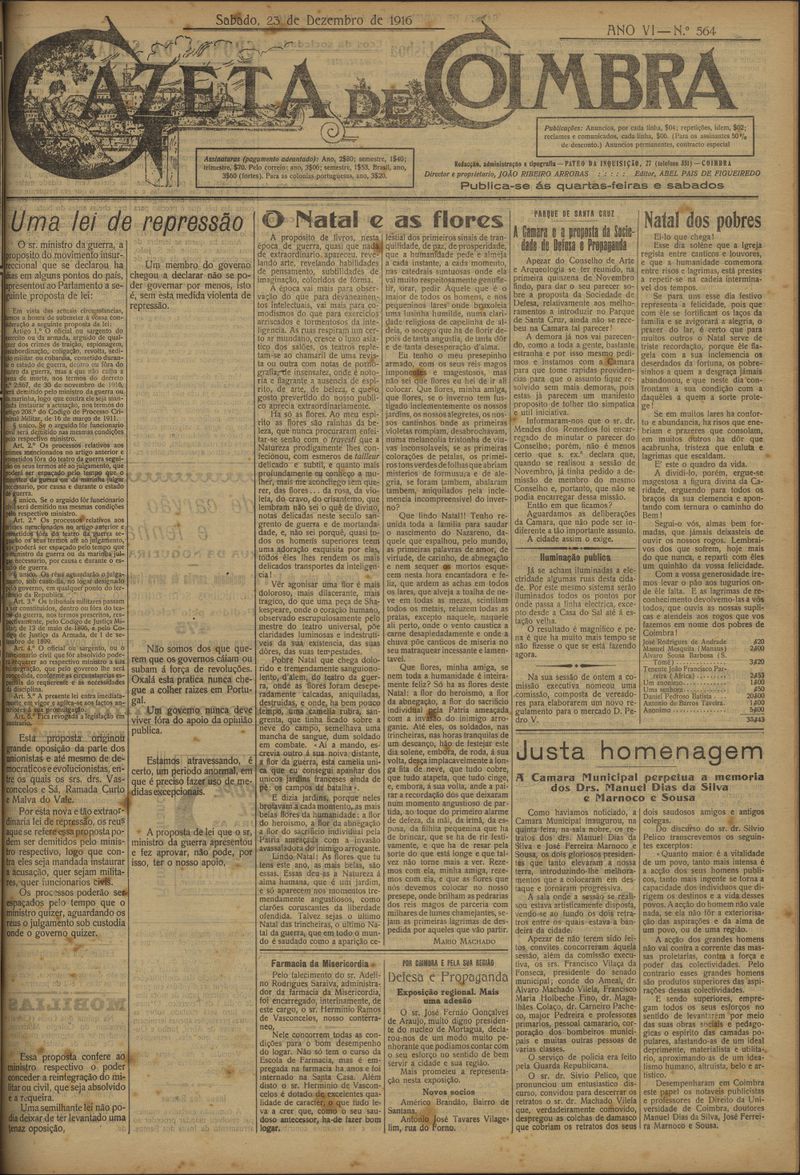 Gazeta de Coimbra 1916, Dezembro 23, sábado - Nº564
