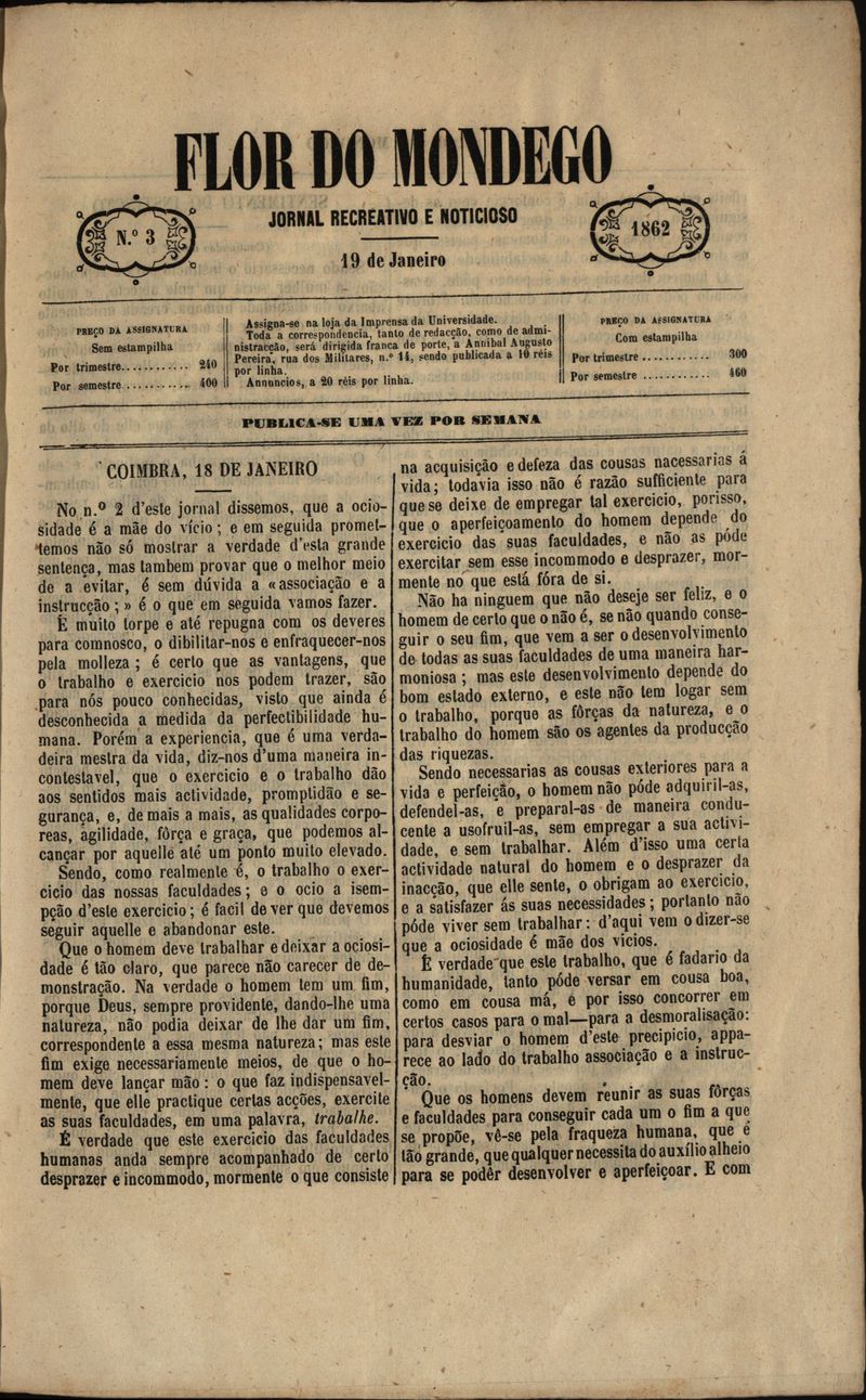 Flor do Mondego : jornal recreativo e noticioso Nº3