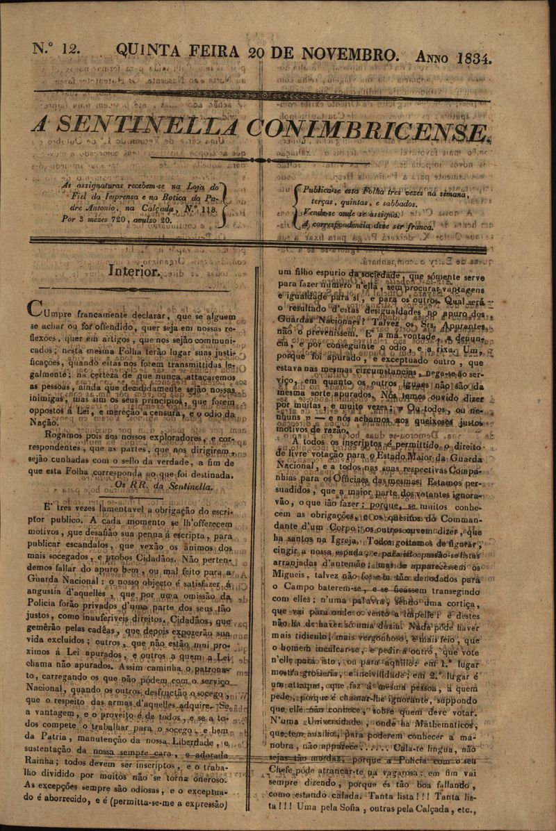 A sentinella conimbricense Nº12